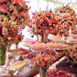 A festa foi no Espaço Costa Hall, que ficou ainda mais bonito com uma decoração romântica em tons de rosa e marsala. Um céu de velas iluminou todo o salão, deixando o clima acolhedor e encantador.